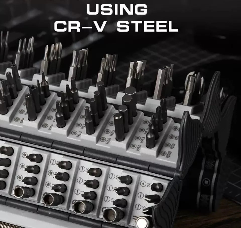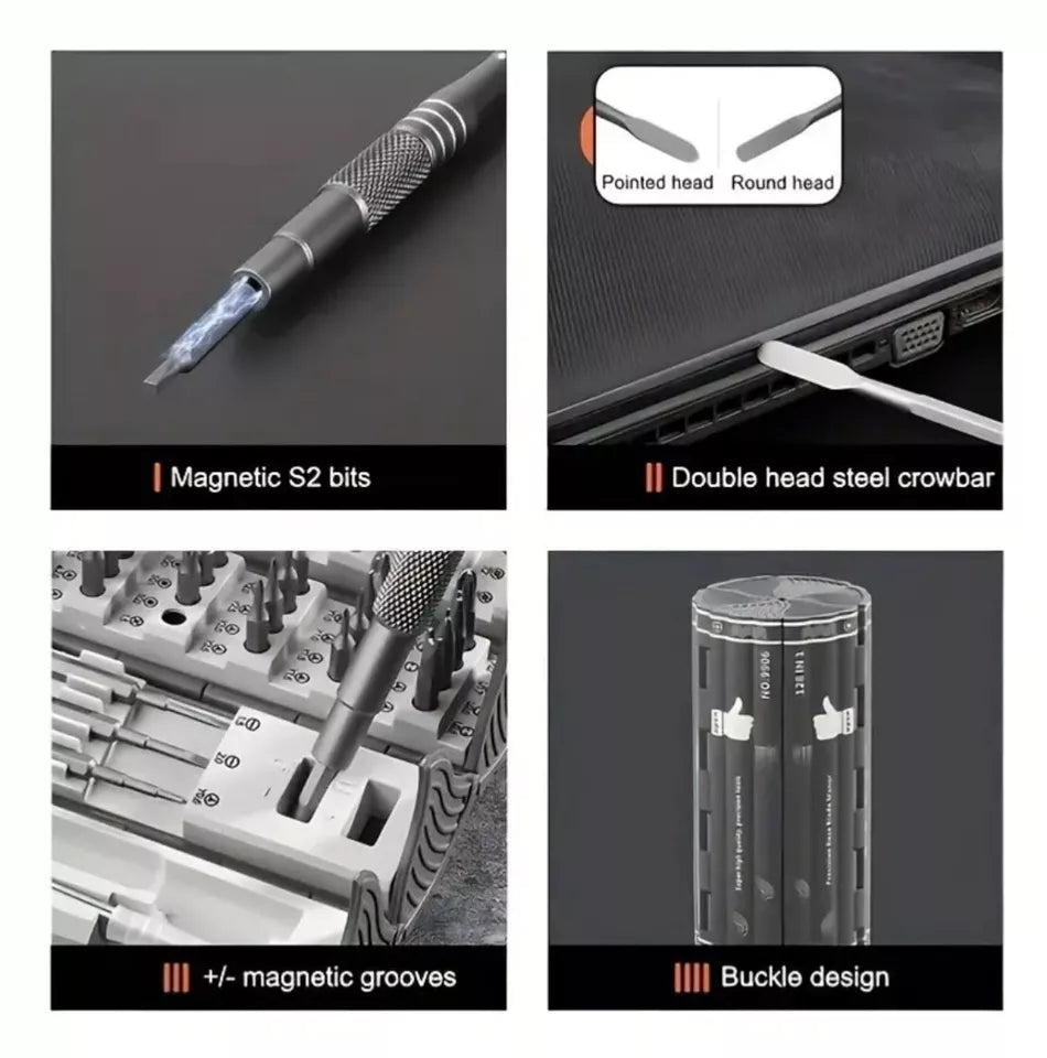 Juego de destornilladores multifuncionales de acero magnético de precisión 128 en 1