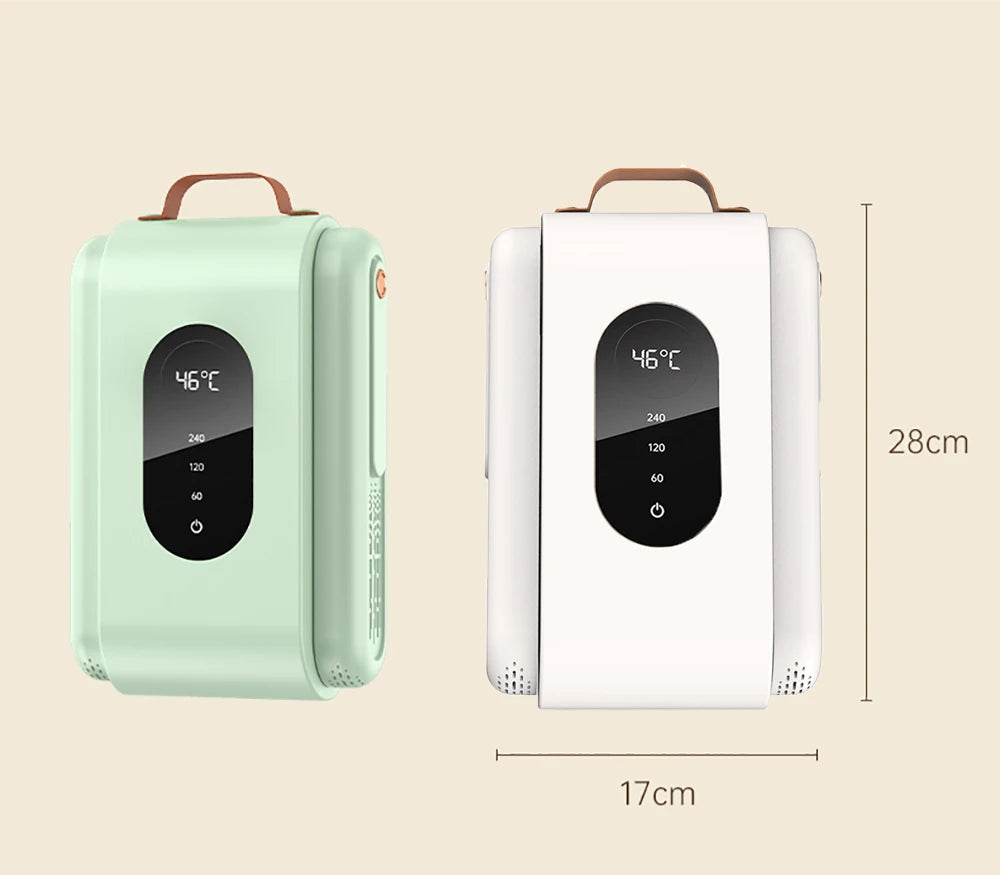 Interruptor giratorio : Control de temperatura constante que mantiene la temperatura a unos 48°C, la temperatura adecuada para secar la tela sin dañarla. Triple esterilización y desodorización.