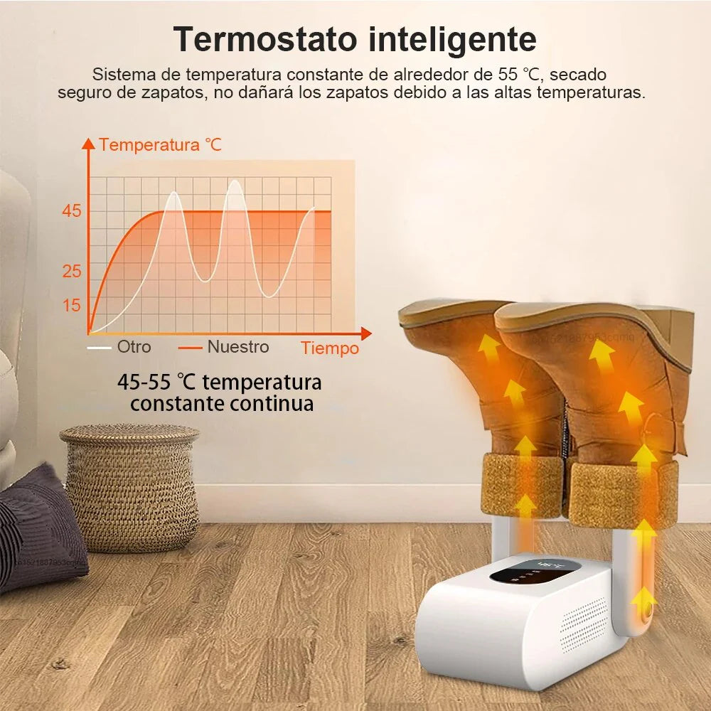 Es hora de actuar. Con el secador multifunción, elimina la humedad, los malos olores y las bacterias que dañan tu calzado y tus accesorios. Seca y desinfecta rápidamente con tecnología UV y carbón activo. No dejes que la humedad te detenga: este secador es la solución para un calzado fresco y limpio.