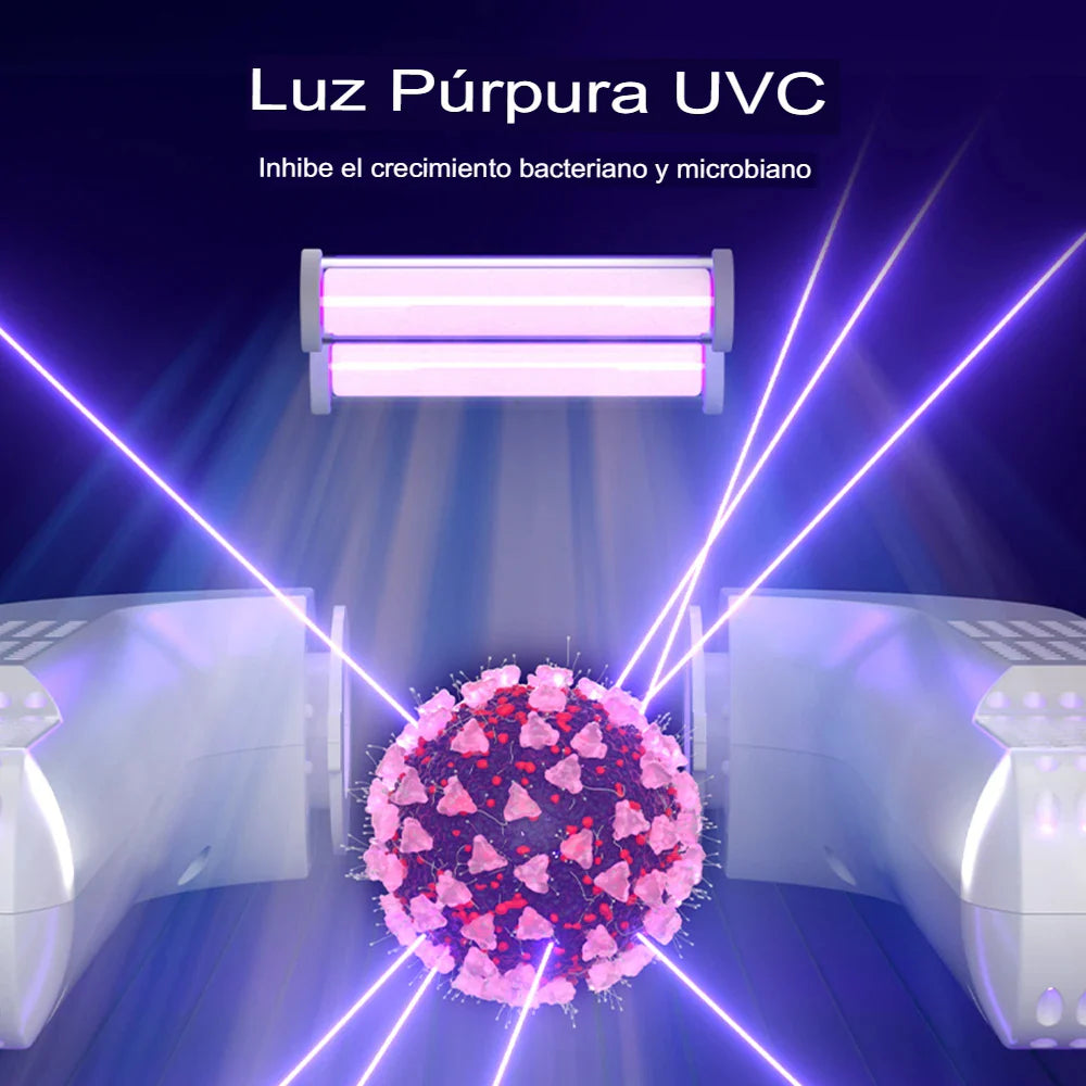 La luz púrpura elimina bacterias y virus al destruir su ADN, lo que la hace ideal para la desinfección y eliminación de olores.